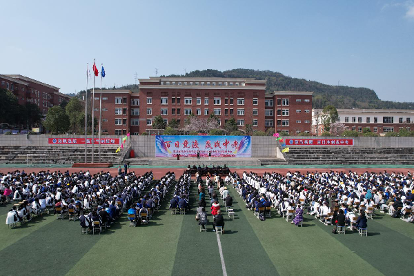 陽(yáng)春三月,春意盎然;憧憬六月,熱血沸騰。為激勵(lì)初三學(xué)子堅(jiān)定信念,頑強(qiáng)拼搏,以良好的心態(tài)面對(duì)中考,在校區(qū)統(tǒng)籌、年級(jí)部和校團(tuán)委初中團(tuán)總支的組織下,3月3日興文校區(qū)初2023屆在操場(chǎng)上隆重舉行“百日竟渡,贏戰(zhàn)中考”誓師大會(huì)。學(xué)校黨委書(shū)記彭中華,興文校區(qū)黨總支書(shū)記趙廷勇,副校長(zhǎng)、興文校區(qū)執(zhí)行校長(zhǎng)劉勇及校區(qū)干部出席活動(dòng),初三年級(jí)全體師生及部分家長(zhǎng)代表參加本次活動(dòng)。