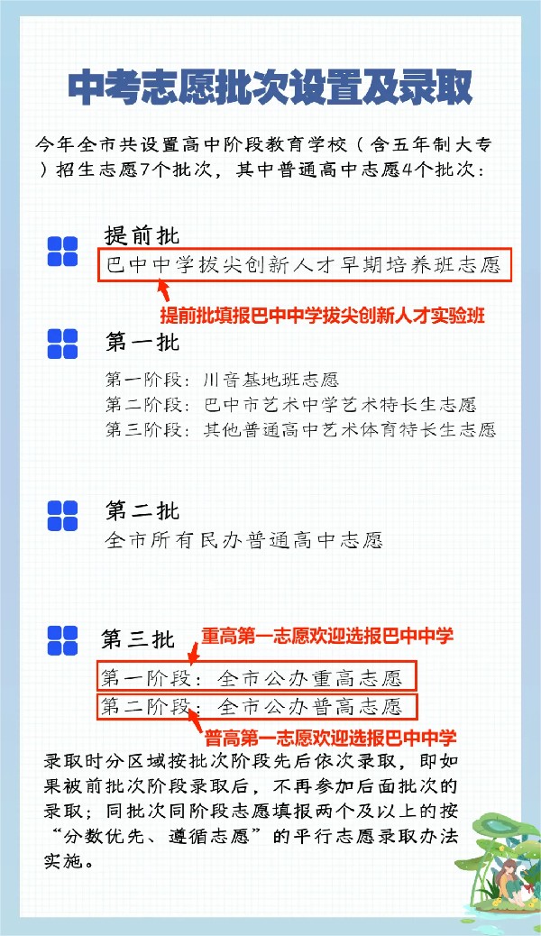 5月6日,巴中市教育局印發(fā)了《巴中市2024年普通高中招生實施辦法》,今年全市普通高中招生政策主要有哪些內(nèi)容和注意事項?