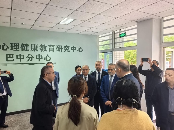 在心理咨詢室,毛里齊奧·拉塞羅詢問了我校的心理咨詢在預防青少年心理健康方面的開展情況,感嘆東方文明與西方哲理的深度融合。