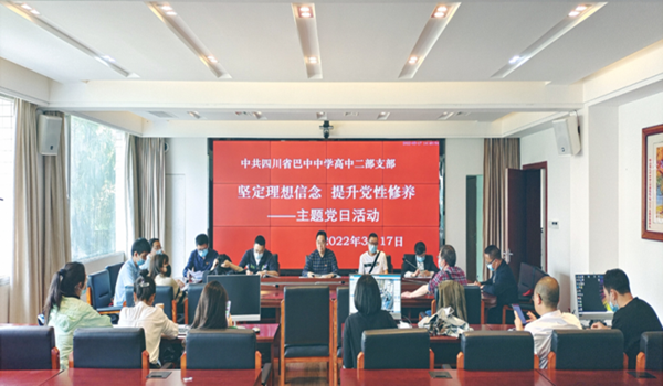 為進(jìn)一步提升黨員的黨性修養(yǎng)和黨性覺悟,改進(jìn)工作作風(fēng),增強(qiáng)黨組織的凝聚力和戰(zhàn)斗力,引導(dǎo)黨員堅(jiān)定理想信念、勇于擔(dān)當(dāng)作為。3月17日下午,巴中中學(xué)高中二部黨支部組織全體黨員召開了以"堅(jiān)定理想信念,提升黨性修養(yǎng)"為主題的黨日活動(dòng)。