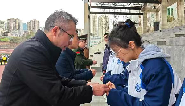 儀式上,來自巴中中學(xué)高三9班的屈慶在發(fā)言中分享了家庭教育為他播下了一顆向往軍營的種子,而這顆種子能夠萌芽、生長、開花得益于自己初高中成長階段,在巴中中學(xué)接受的學(xué)校教育,特別是在學(xué)校舉行的每次愛國主題教育活動(dòng)、國防教育活動(dòng)和紅色文化基地研學(xué)活動(dòng)都讓自己心潮澎湃,對(duì)軍旅生活愈加向往;學(xué)習(xí)過程中一邊加強(qiáng)知識(shí)學(xué)習(xí)和體育鍛煉,另一邊注重意志品質(zhì)提升。今年他已順利通過空軍體檢,目前全力沖刺高考,在此,他倡議同學(xué)們要擁有“清澈的愛,只為中國”這樣的愛國情懷。